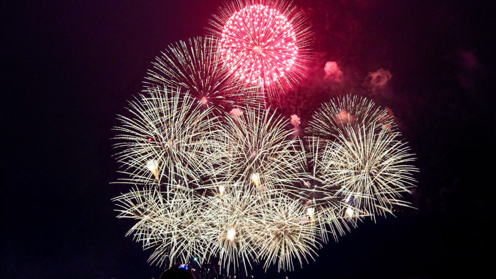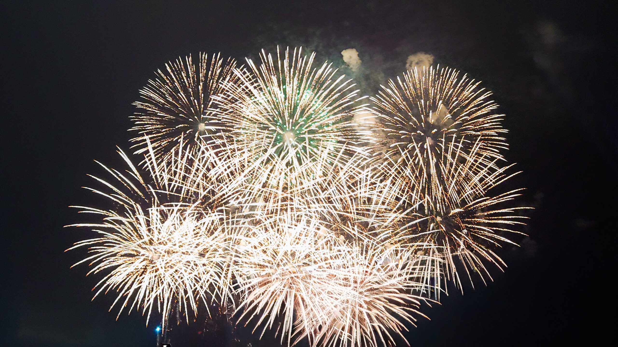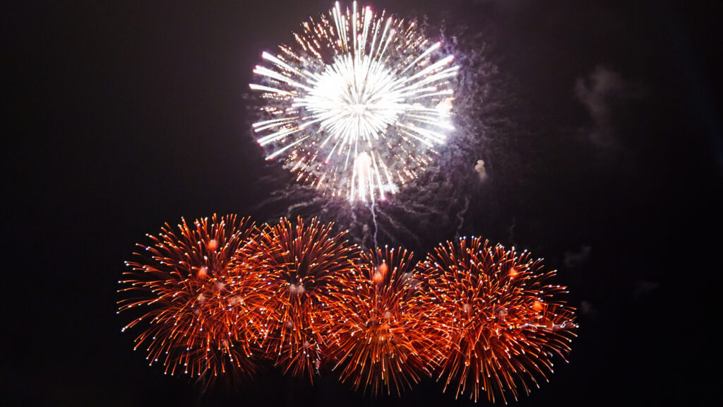 ちょうどチェコパビリオンの最上階へ登った時に打ち上げ花火が始まりました。